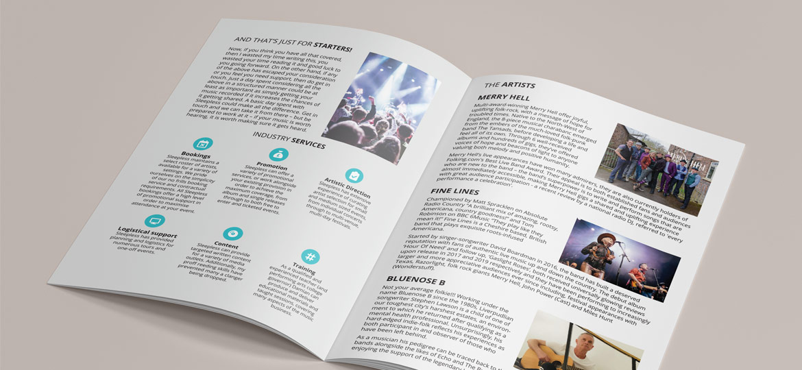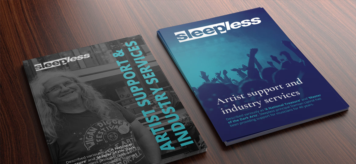 Described variously as ‘A National Treasure’ and ‘Master of the Dark Arts’, Sleepless principal Damian Liptrot has been providing support for musicians for 40 years. As a long time client Damian got in touch to help develop the online presence and some printed material for his music industry PR business.